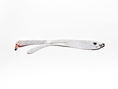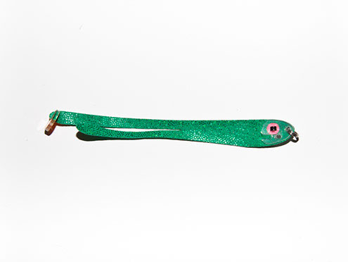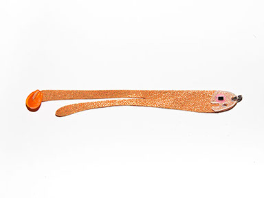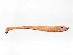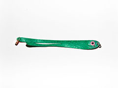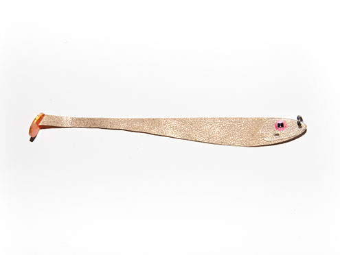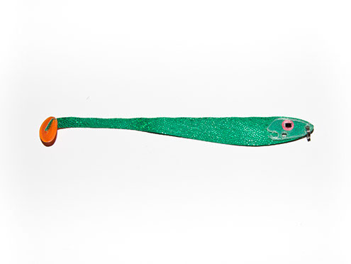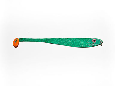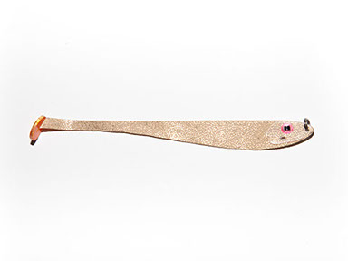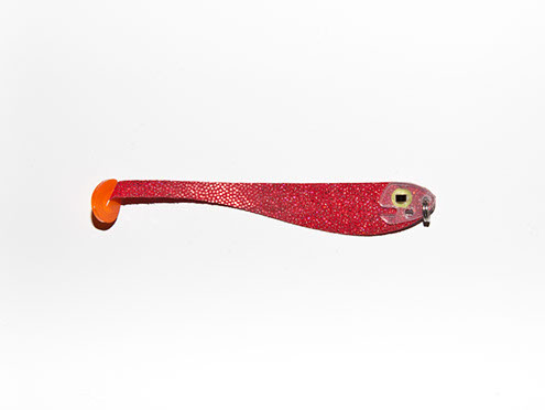 Eine absolute Einzigartigkeit des Köders ist sehr geringes Gewicht. Die 15-20 cm Köder wiegen ohne Haken ungefähr zwei Gramm, also um das zehnfache leichter als Silikonköder der ähnlichen Größe.