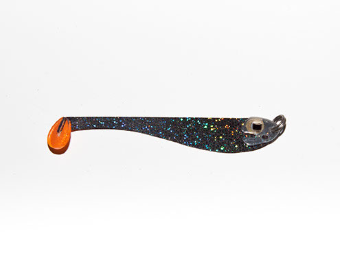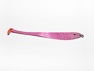 Die Struktur des Stoffes mit Glitzerpartikeln imitiert besonders gut Fischschuppen was offenbar in Silikonködern nicht erzielt werden kann.
